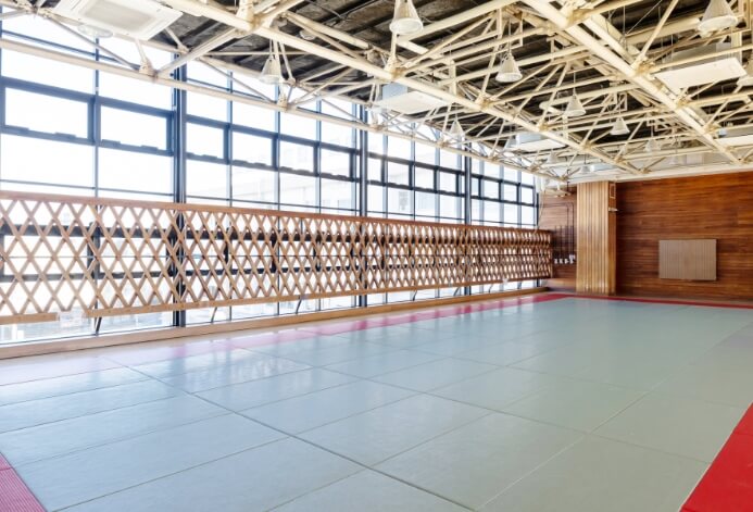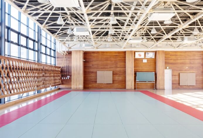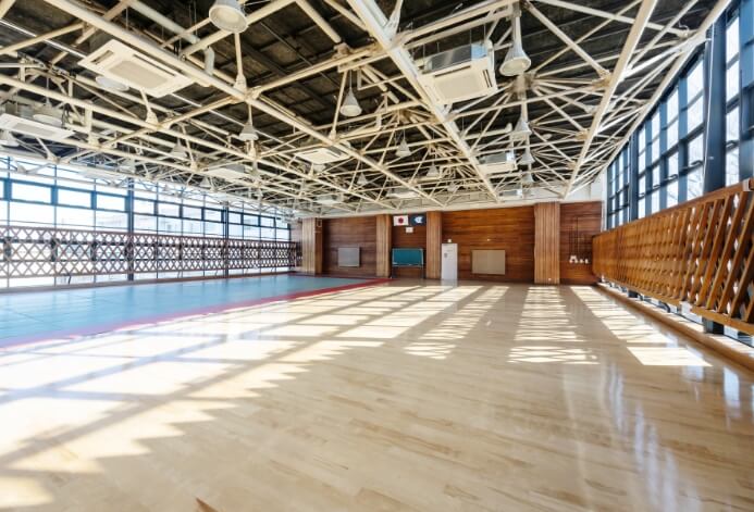 剣道や空手に適した、足腰への負担を和らげる弾力性のある床を採用しています。