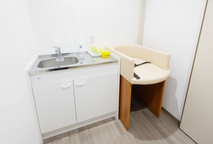 小さなお子様連れの方も安心して利用できる、おむつ替え可能な個室です。