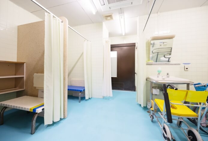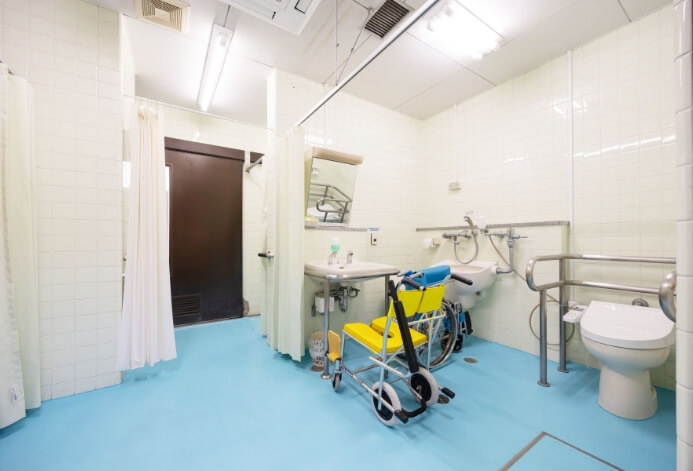 車椅子のまま着替えができる「多目的更衣室」や、段差のないフラットな設計の「専用シャワー・トイレ」も併設しています。