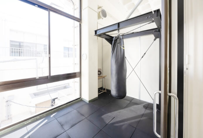 本格的なサンドバッグを完備し、ボクシングや空手などの打撃練習、運動不足解消のためのエクササイズに最適な専用ルームです。