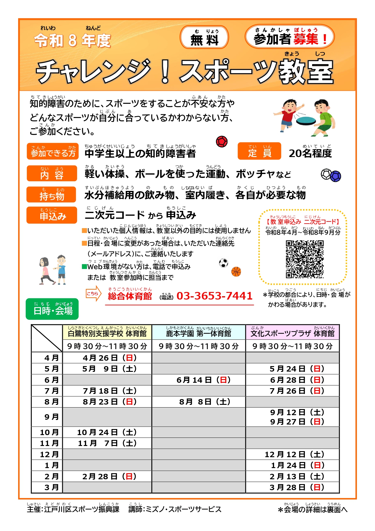 お子様からシニアまで。当日参加のほか、募集制の限定教室も。