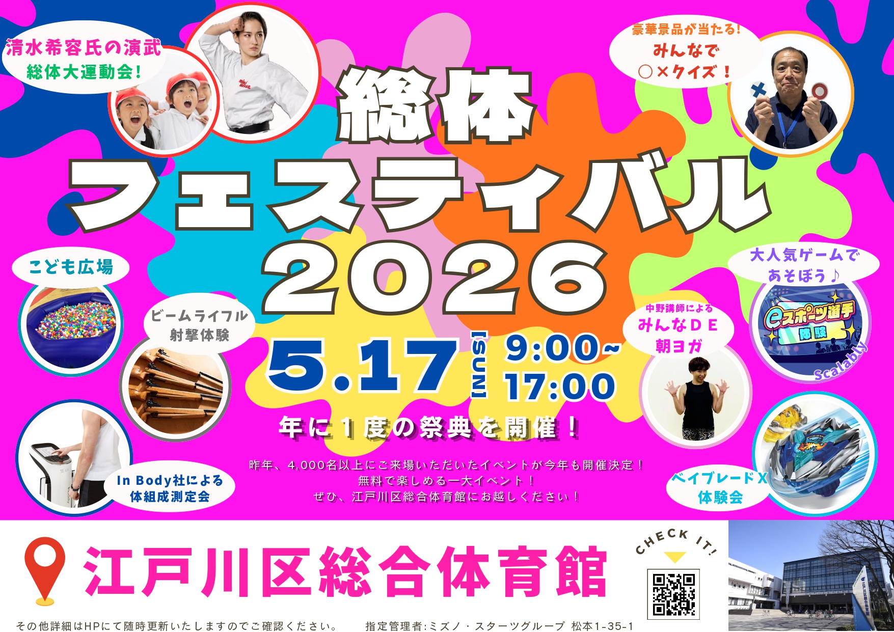 江戸川区総合体育館は、どなたでも気軽にスポーツを楽しめる施設です。