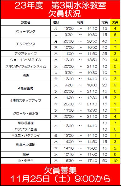 また、キャンセル待ち受付は26日(日)10時から総合受付窓口・電話にて受付ます。