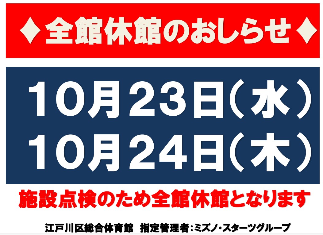 施設点検のため全館休館となります