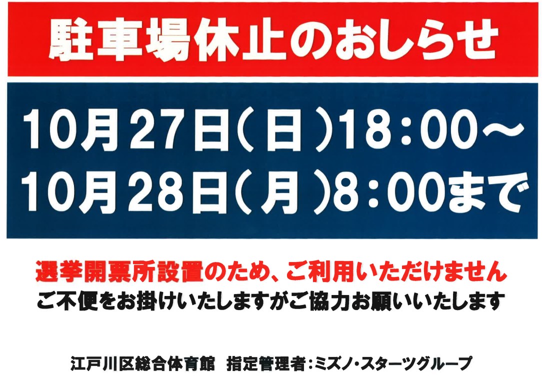 10月28日(月)【2階主競技場のみ】午前・午後休止 *夜間通常営業