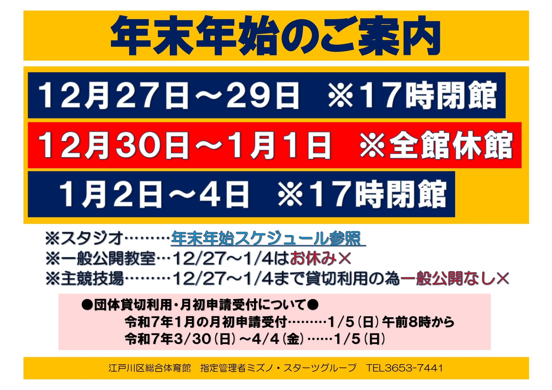 体育館年末年始のご案内はこちら