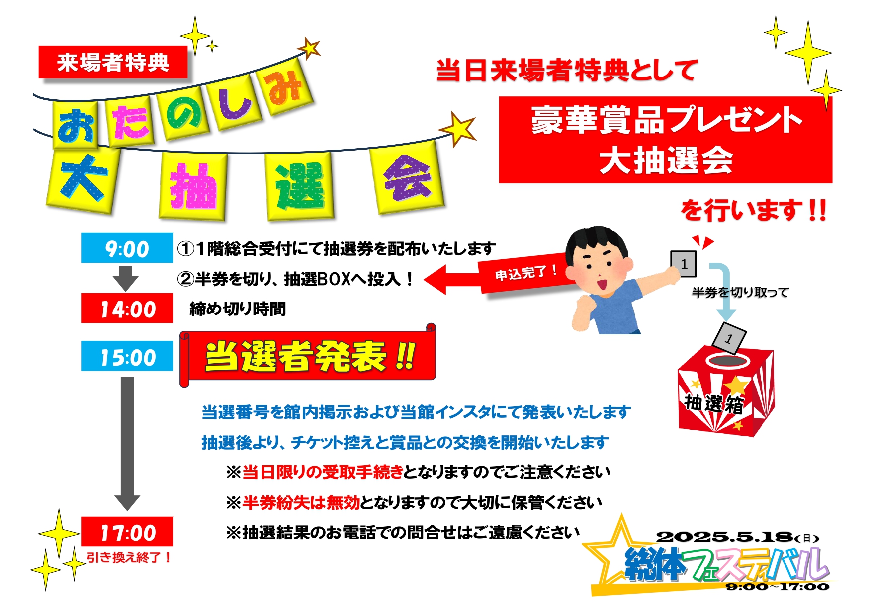 9時00分~14時00分:抽選券配布・抽選申込