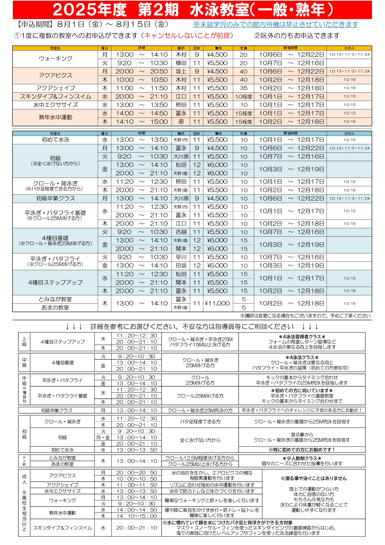 第2期プール棟教室の募集が8月1日(金)より始まります。