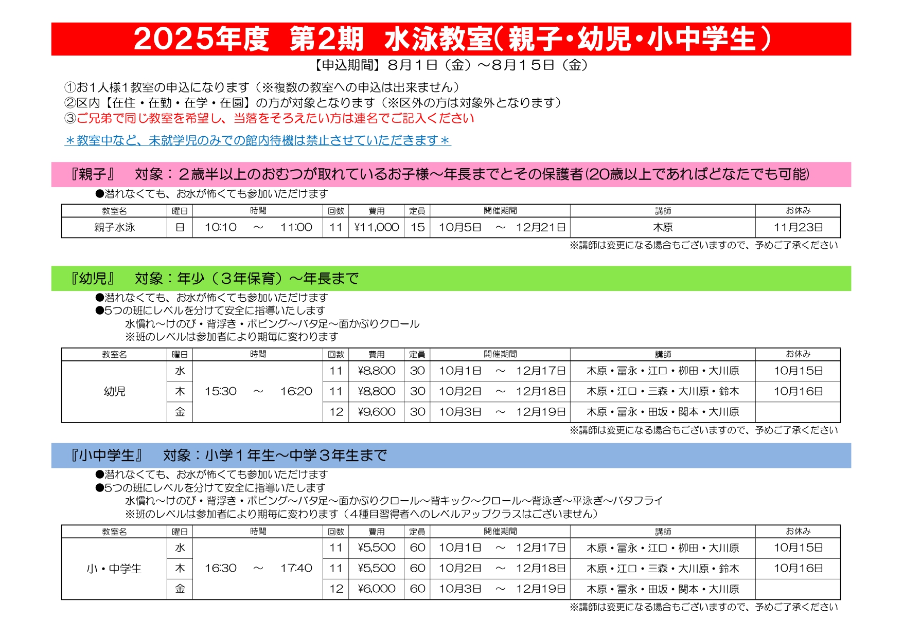親子・幼児・小中学生の詳細はこちら