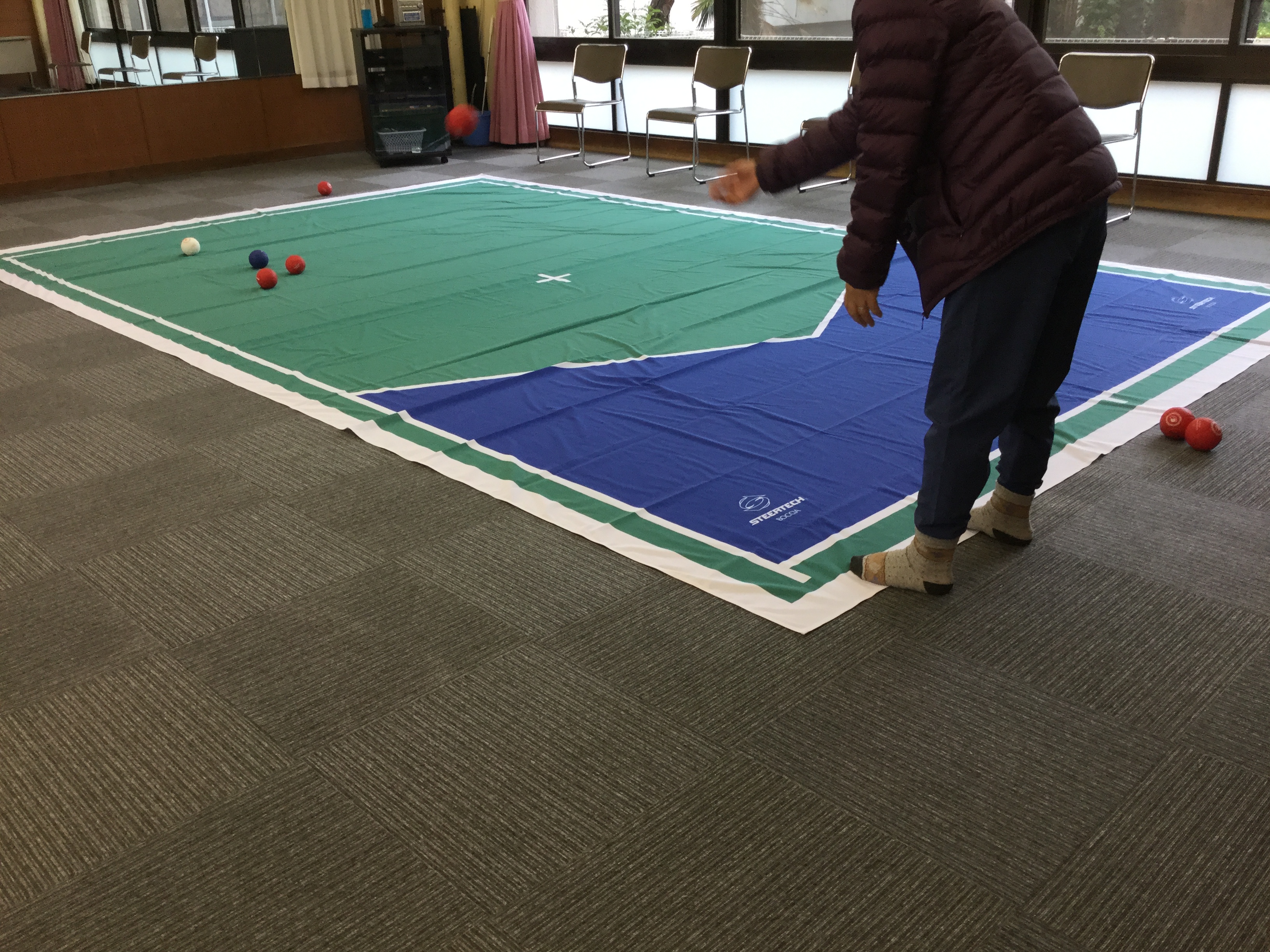 ボッチャのマナーやルールを知り、投げ方の基本を学びます。