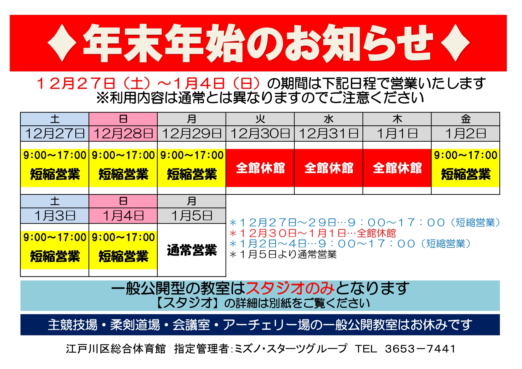 体育館年末年始のご案内はこちら