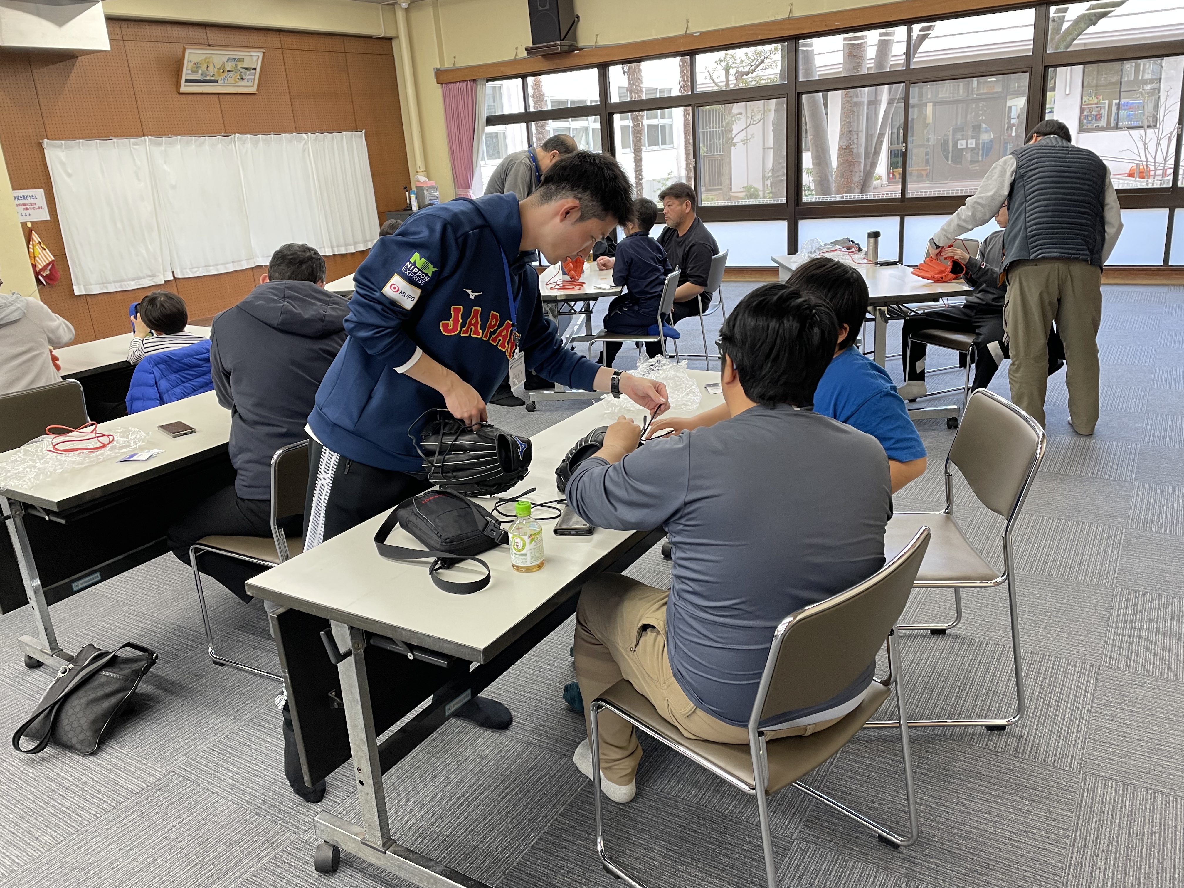 複雑な紐通しに悪戦苦闘しながら、グローブを作る大変さを知り、物を大切にすることを学びました。