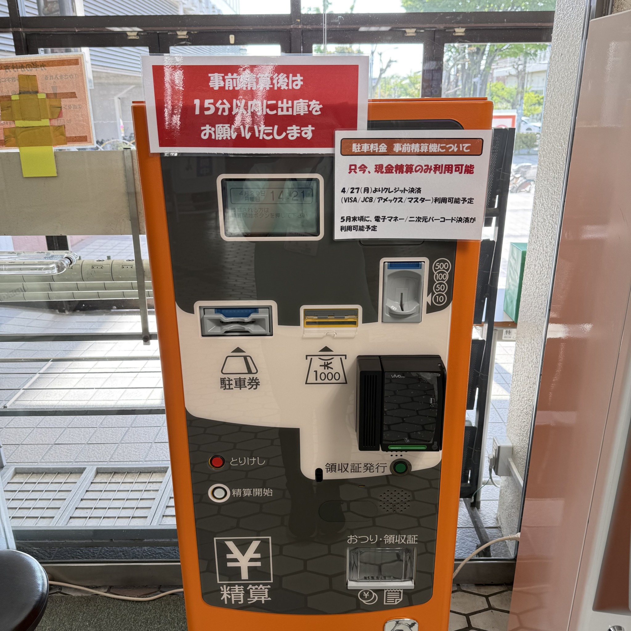 ※事前精算後、15分以内に出庫をお願いします。
