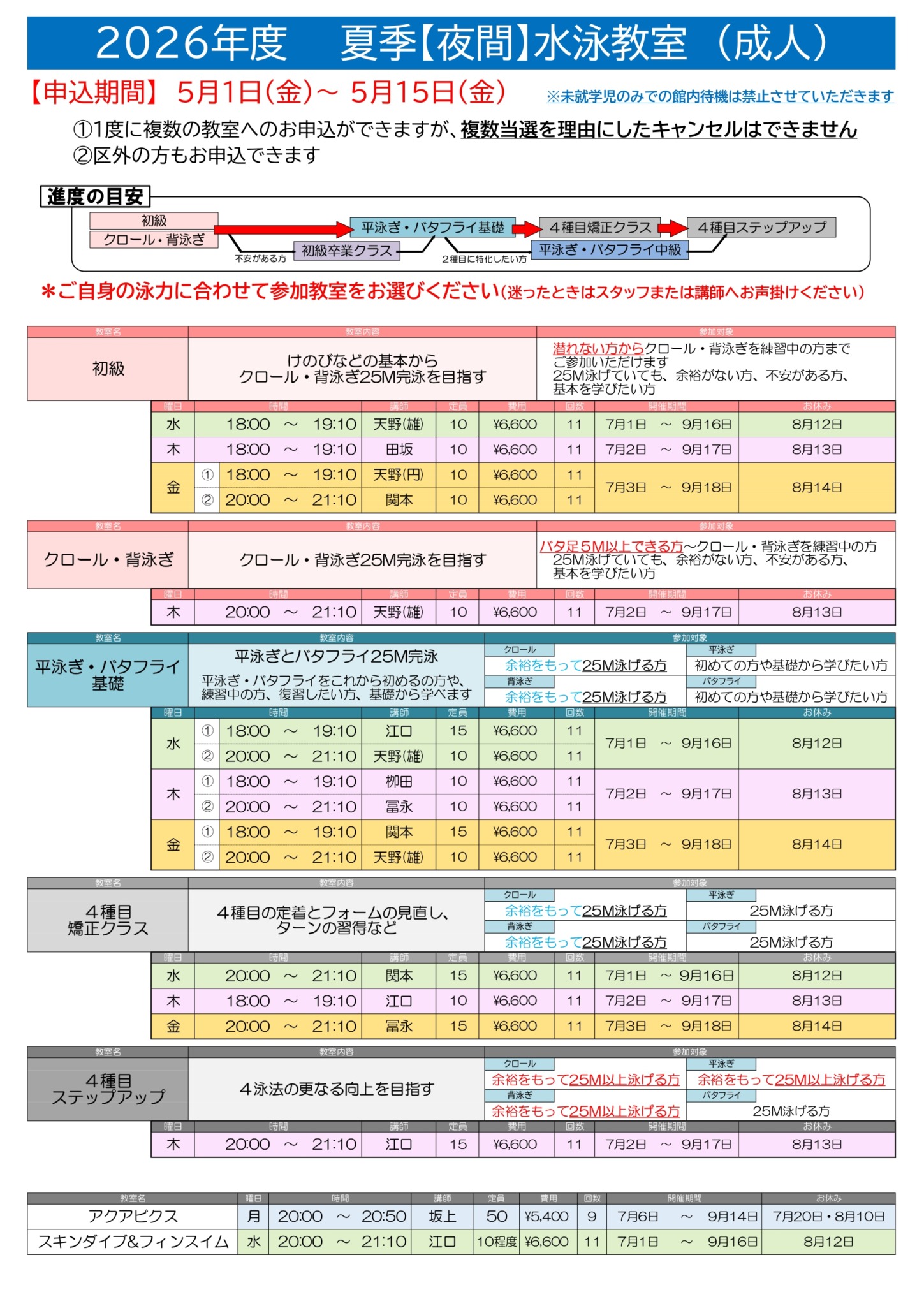 2026年度 夏季水泳教室《一般・夜間》を7月~9月に開催します!