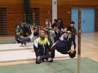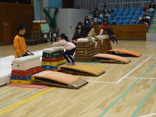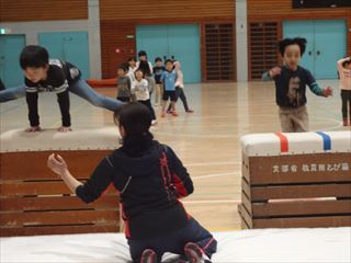 教室中練習をしていくごとに、初めて逆上がりが出来た子や跳箱が跳べる子が