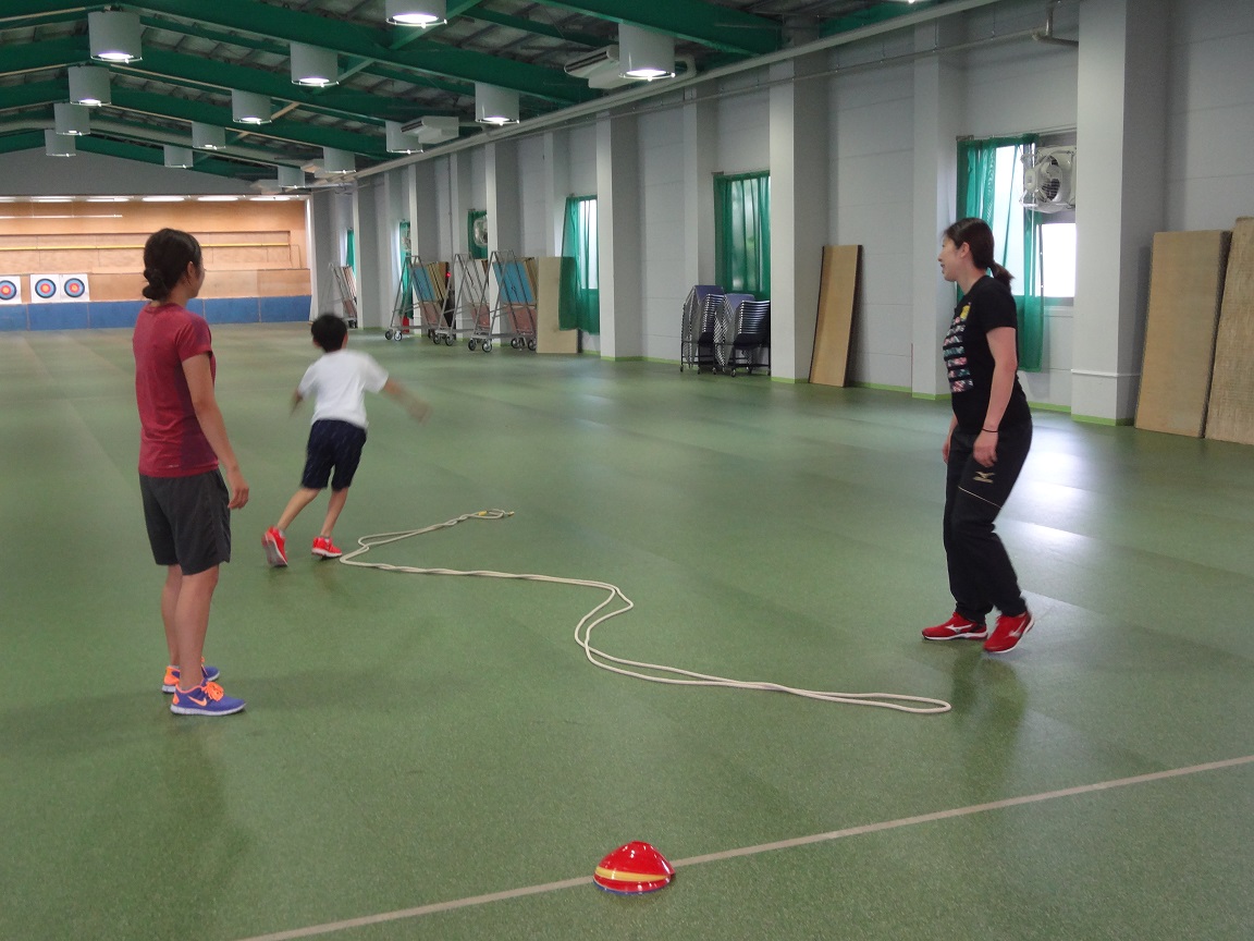本日は広いアーチェリー場でボール遊びや縄跳び、しっぽとりかけっこなどを行い沢山体を動かしました。