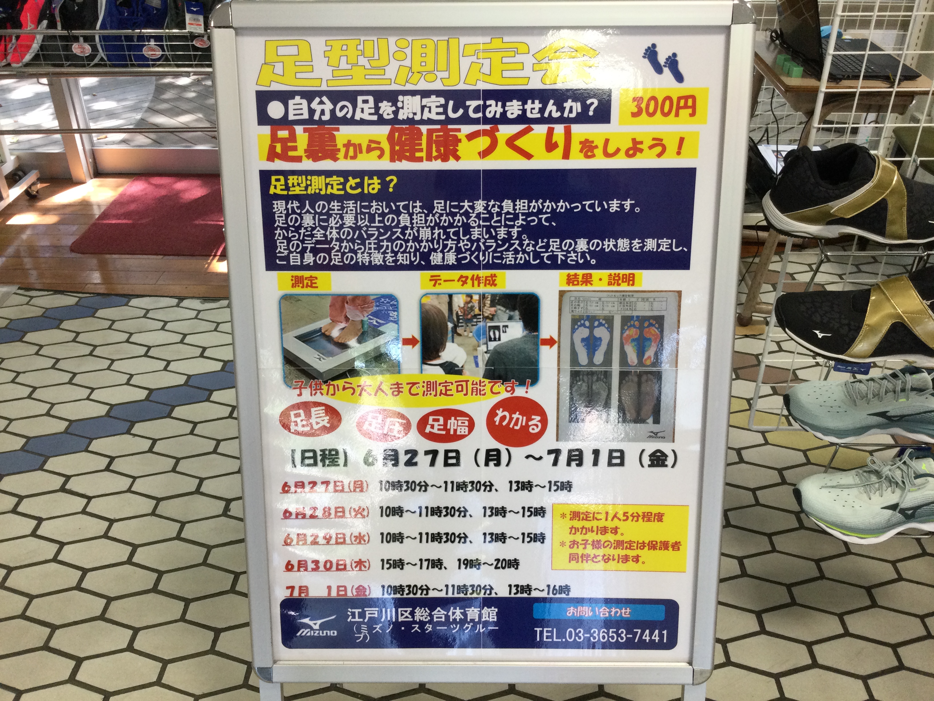 27日(月)より1F受付前にて足型測定会を行なっています👣
