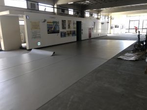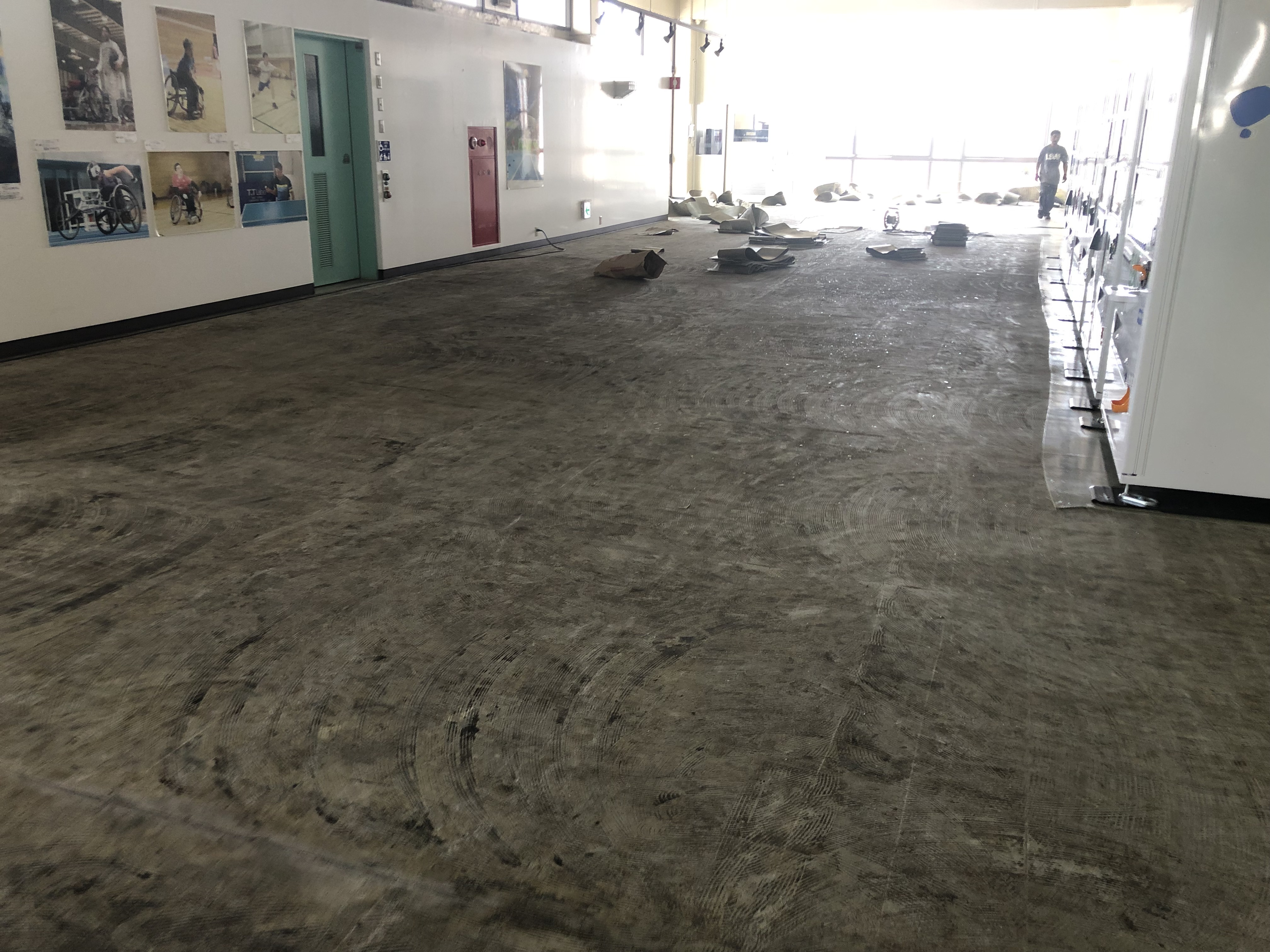 床が全部剥がされました 新しいシートを張る作業が始まりました