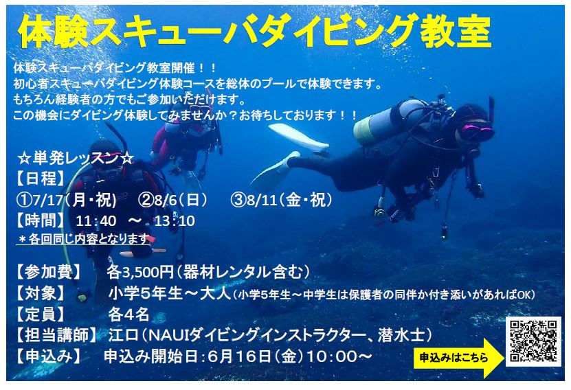今年もスキューバダイビング・スノーケリング教室を開催いたします!