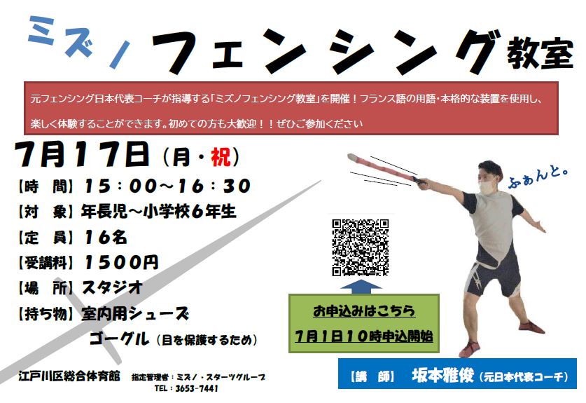 【7月17日(月・祝)】ミズノフェンシング教室開催!