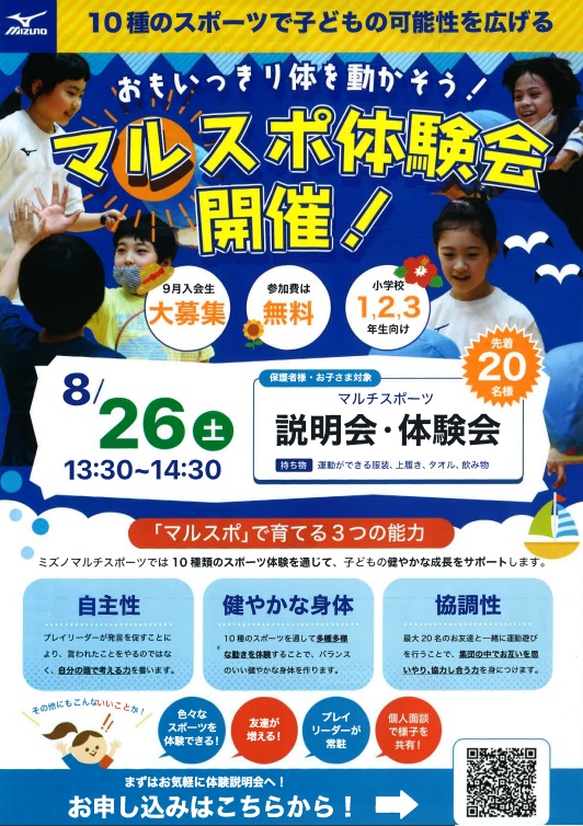 6月17日(土)【第2期体育棟募集制教室 欠員募集開始】