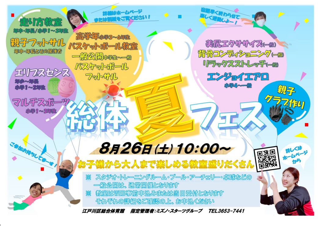【8月26日】江戸川区総合体育館 夏フェスイベント開催のお知らせ