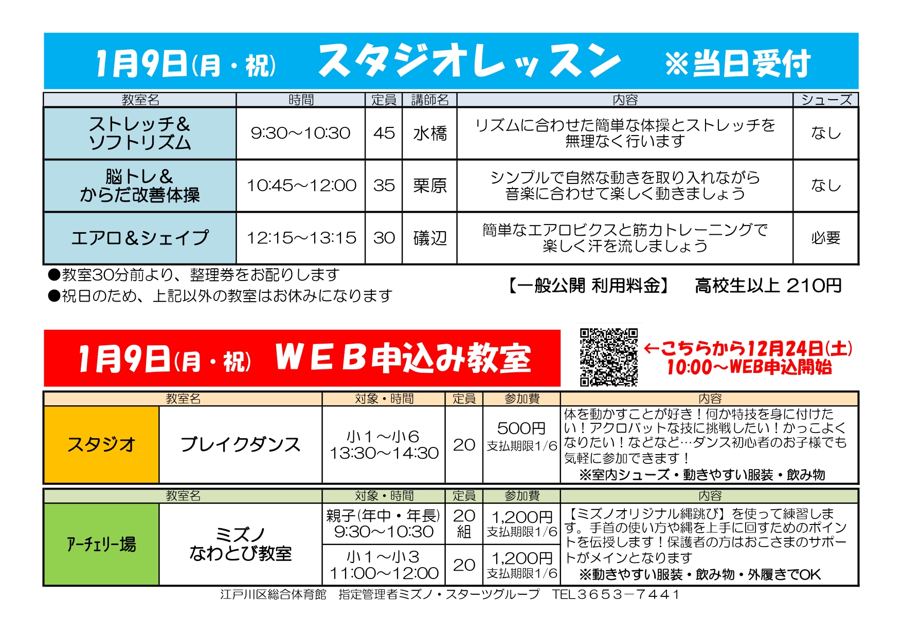 【1月9日(月・祝)成人の日スタジオ特別レッスンのお知らせ】