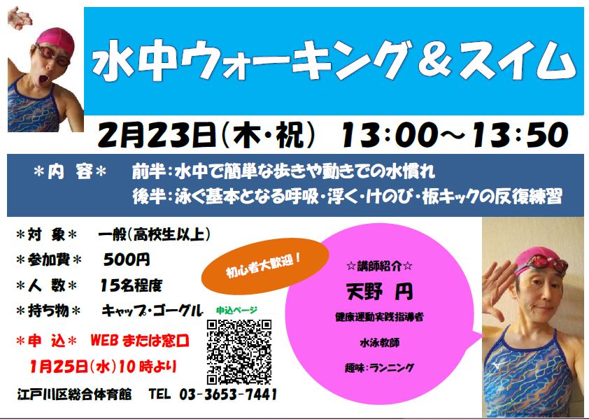 2月23日(木・祝)水泳教室「水中ウォーキング&スイム」開催!