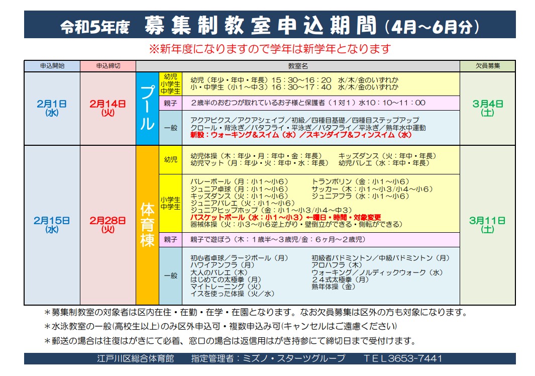 令和5年度 募集制教室申込み期間及び変更教室のお知らせ