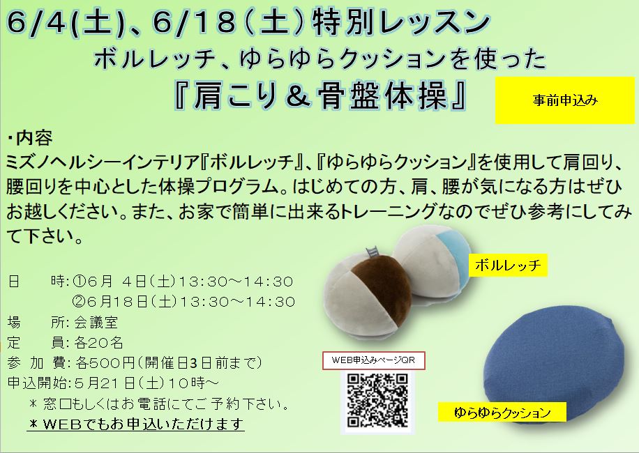 【6月】ボルレッチ&ゆらゆらクッション『肩こり&骨盤体操』