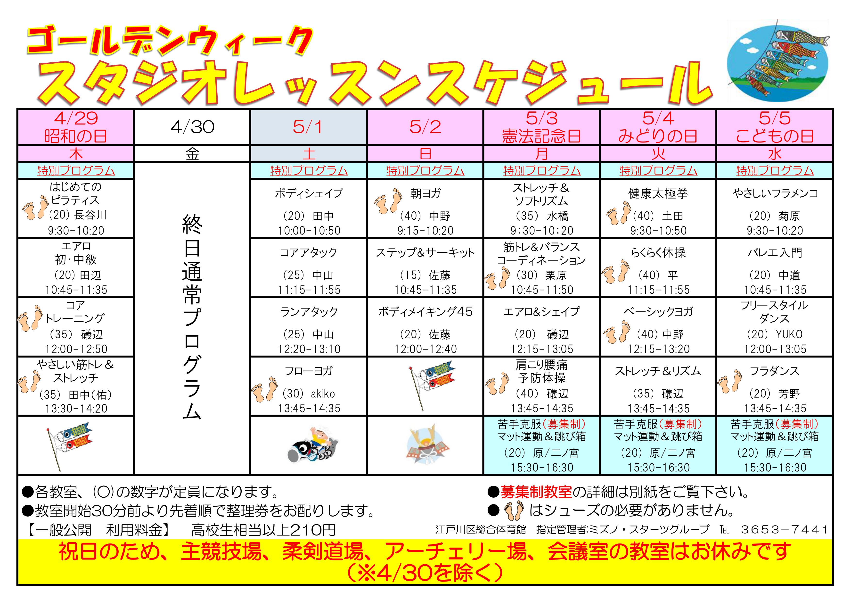 【ゴールデンウィークスタジオレッスンのお知らせ】
