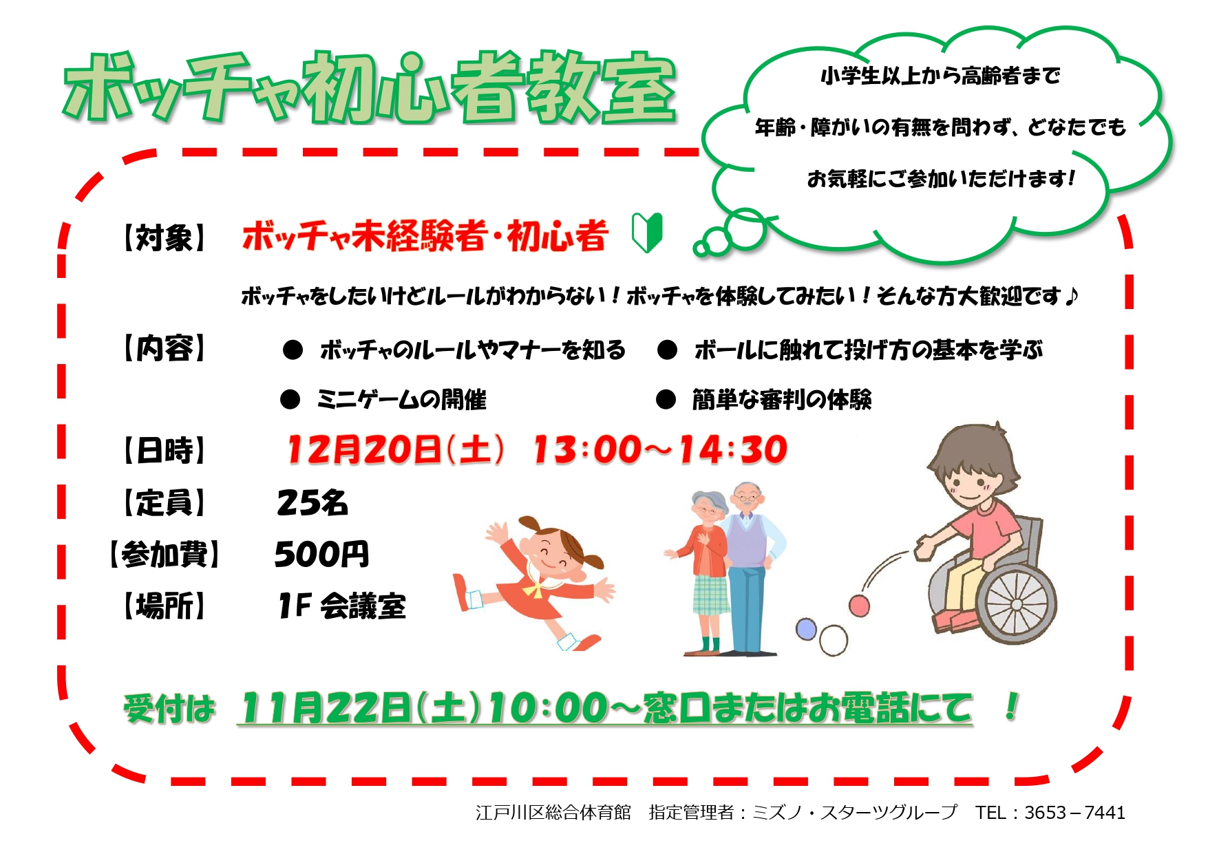 12/20(土)【ボッチャ初心者教室】開催のお知らせ