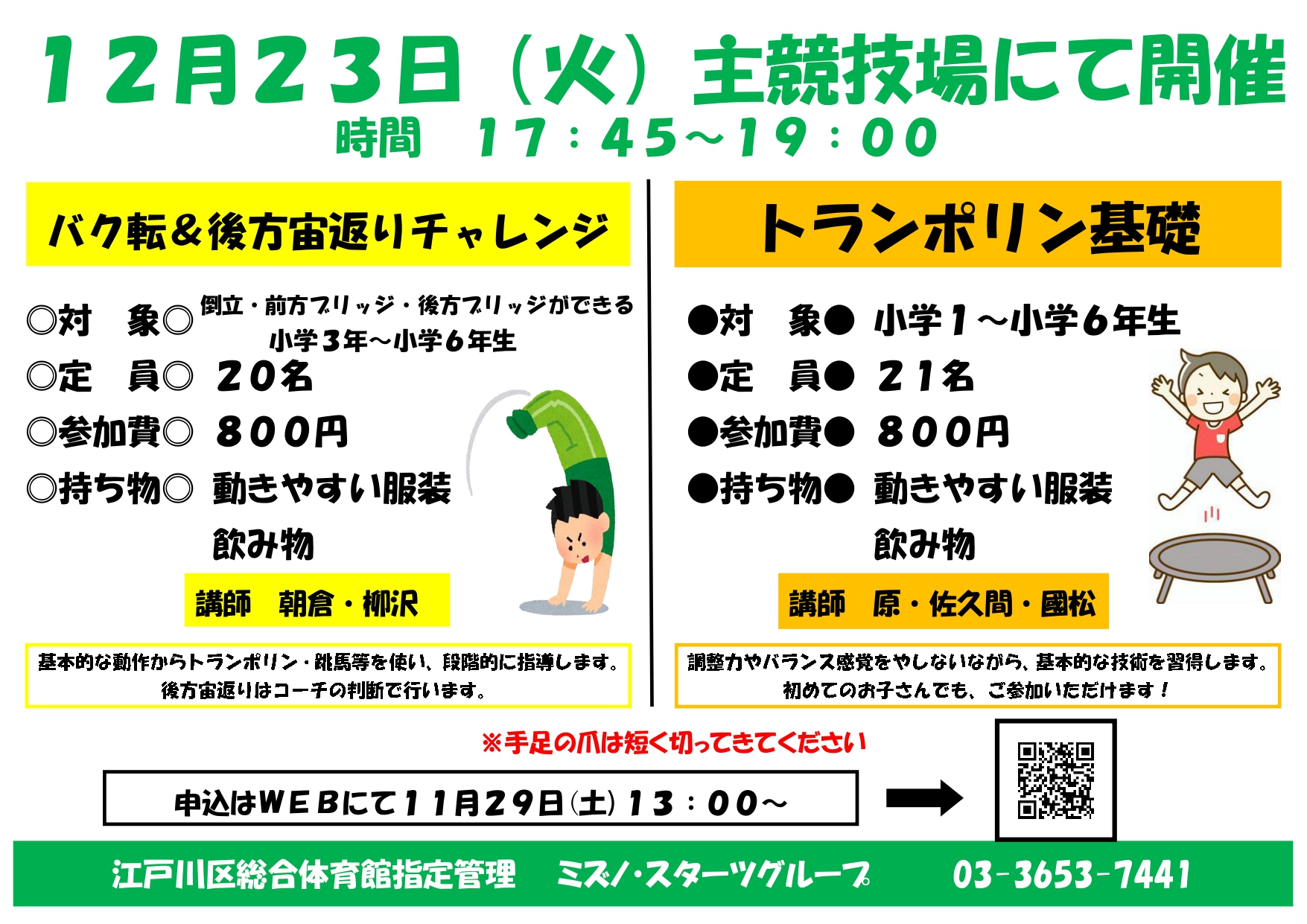 【12/23(火)】主競技場特別教室開催のお知らせ