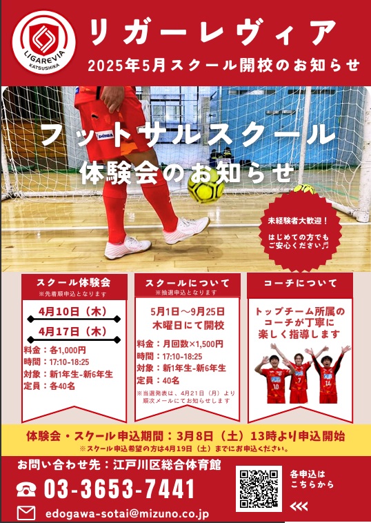 【2025年5月より】リガーレヴィアフットサルスクール新規開校のお知らせ