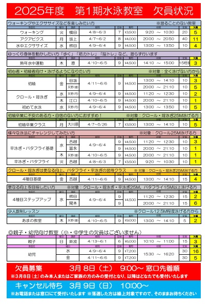 【2025年度第1期水泳教室欠員募集】