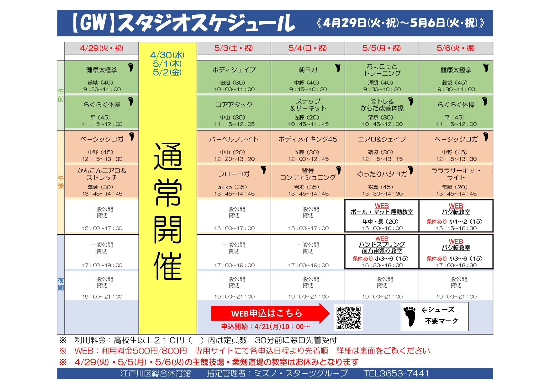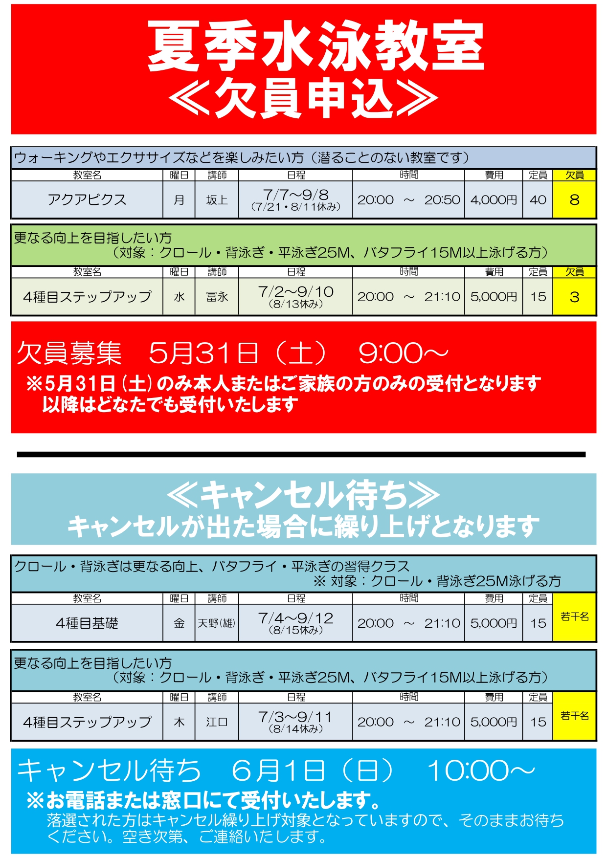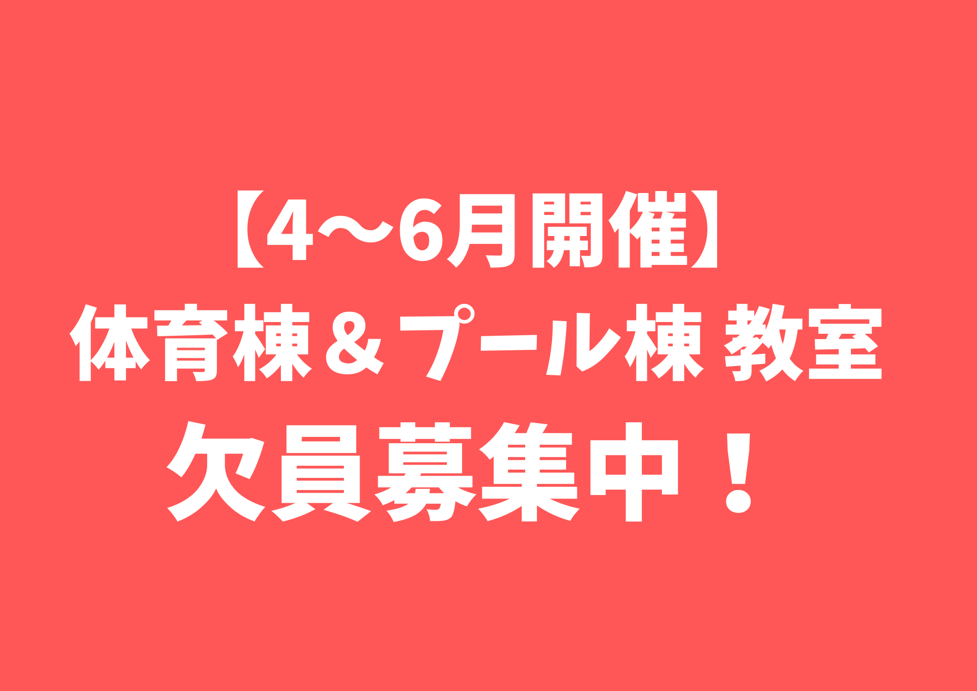 【4~6月】体育棟&プール棟 募集制教室 欠員募集中!