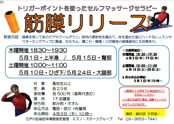 「筋膜リリース」5月開催のお知らせ