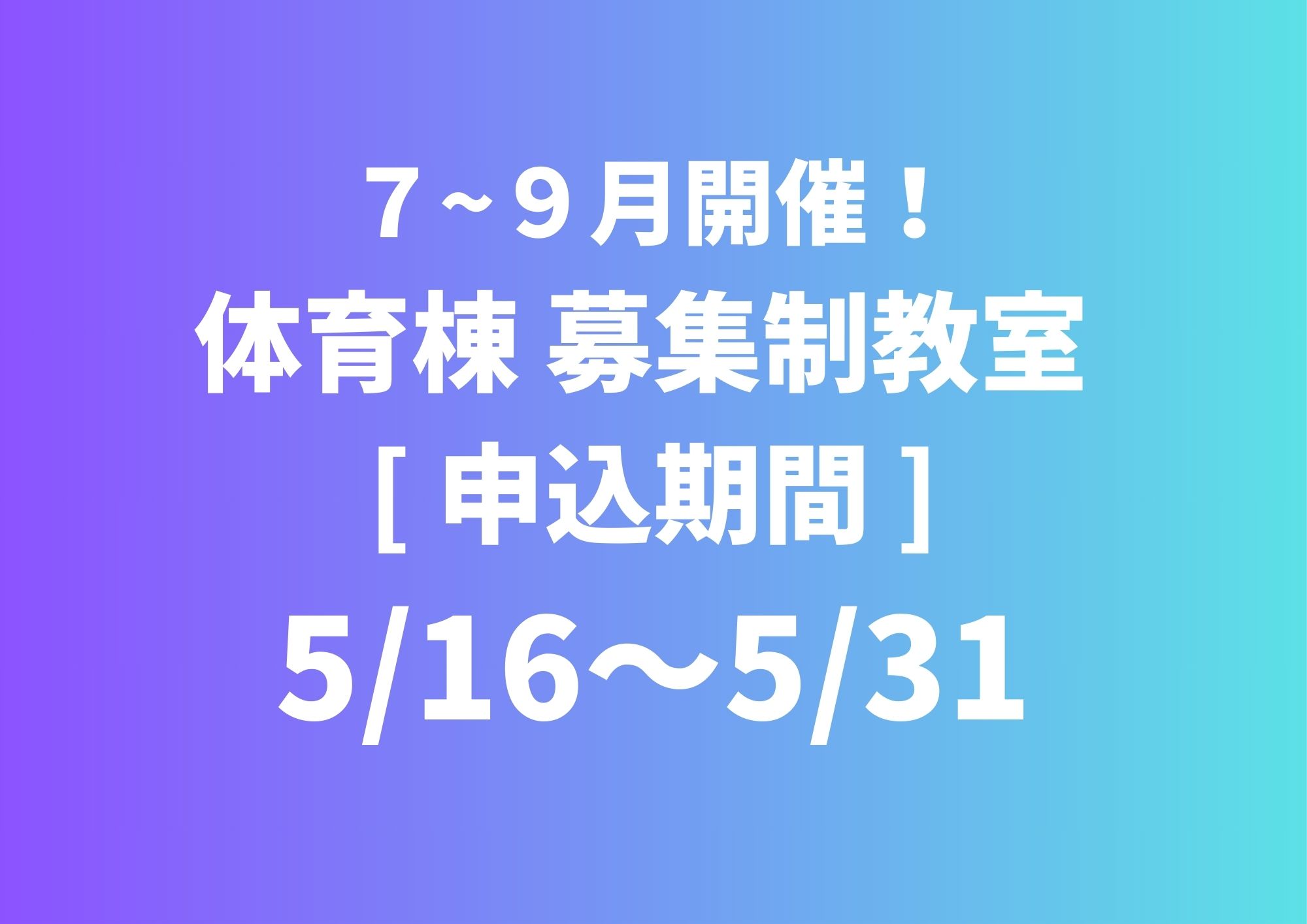 第2期体育棟募集制教室 申込期間のお知らせ
